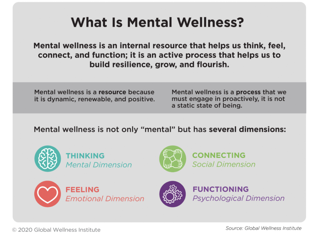 The Global Wellness Institute (GWI) does a great job of breaking down what Mental Wellness looks like.